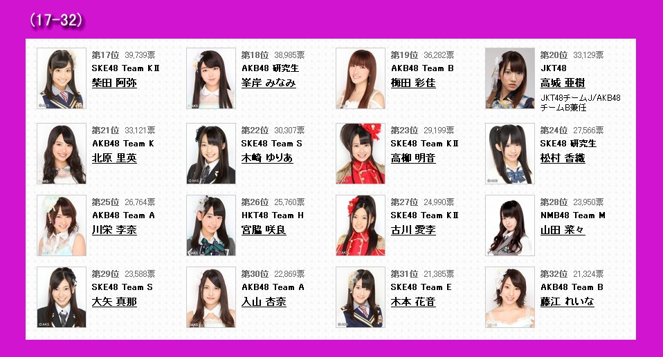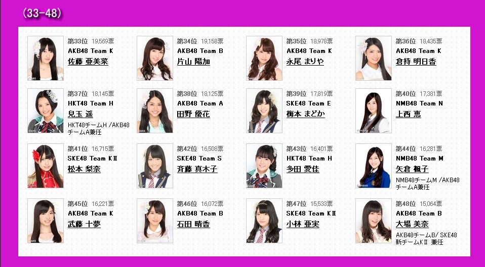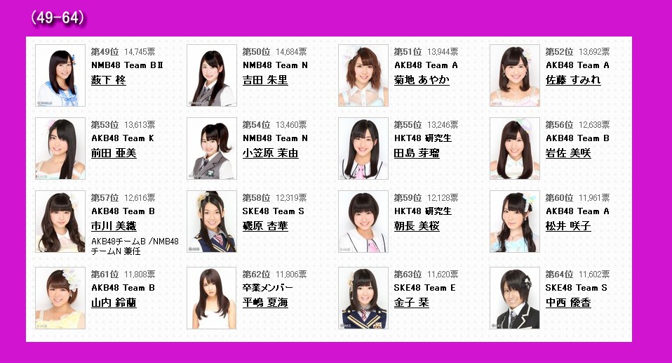 由粉絲投票選出AKB48第32張單曲錄制陣容64名(主打曲16名,非主打48名)