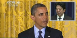 安倍訪美受冷遇 釣魚島問題奧巴馬只字未提 日本首相安倍晉三于2月21日至23日訪問美國,但美方低調接待。安倍的訪問行程中,具有實質性的活動只有兩場,一是22日上午與美國總統奧巴馬的會談,二是在華盛頓智庫戰略與國際問題研究中心發表題為《日本回來了》的演講。