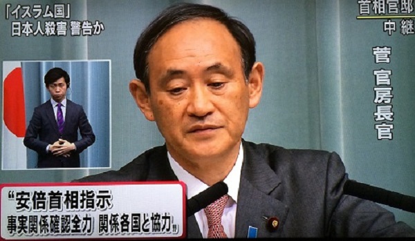 據《產經新聞》報道,日本政府發言人、內閣官房長官菅義偉21日在記者會上針對2名日本人被綁架事件稱,日本政府認為極端組織所提出的交贖金的最后期限應該是(日本時間)23日下午2時50分左右![詳細]