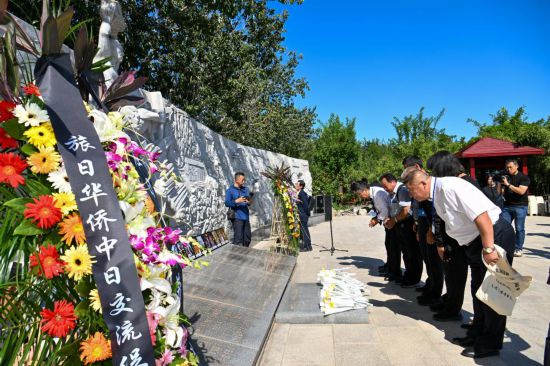 9月18日,中日友好人士在天津“花岡暴動紀念園”獻花鞠躬。新華社記者 孫凡越 攝 新華社天津…