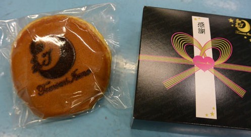 銅鑼燒被放在了印有“感謝 Tmomi Itano(板野友美的羅馬字注音)”的盒子里,銅鑼燒上還刻有兔子坐在月亮上這一板野友美的特有標志。得到銅鑼燒的工作人員和媒體們都歡呼稱其為“板野 △(三角形)”。(馬瀟漪)
