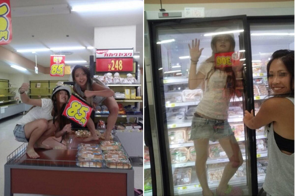 在披薩店打工的兩個女孩在另外一家超市“搞怪”,并把照片發布到Twitter上。