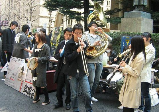 大學社團異;钴S,每年4月新生入學之際,大學里的各個社團為了吸引更多優秀的新生,都會使盡渾身解數“搶人”,其激烈程度猶如競選。慶應義塾大學四年級學生松尾一志,從作為新生和老生兩個角度,向記者介紹了日本大學迎新活動最精彩的一幕——社團搶奪新生之戰。
