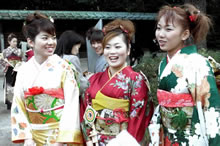 和服是日本傳統民族服裝的稱呼。它在日本也稱“著物”。和服是仿照我國隋唐服式改制的。公元八至九世紀,日本一度盛行過“唐風”服裝。以后雖有改變形成日本獨特的風格,但仍含有我國古代服裝的某些特色。婦女和服的款式和花色的差別是區別年齡和結婚與否的標志。例如,未婚的姑娘穿緊袖外服,已婚婦女穿寬袖外服;梳“島田”式發型(日本式發型之一,呈缽狀),穿紅領襯衣的是姑娘,梳圓發髻,穿素色襯衣的是主婦。和服不用鈕扣,只用一條打結的腰帶。腰帶的種類很多,其打結的方法也各有不同。比較廣泛使用的一種打結方法叫“太鼓結”,在后腰打結處的腰帶內墊有一個紙或布做的芯子,看去像個方盒。這就是我們?吹降暮头澈蟮难b飾品。由于打結很費事,戰后又出現了備有現成結的“改良帶”和“文化帶”。雖然今天日本人的日常服裝早已為西服所替代,但在婚禮、慶典、傳統花道、茶道以及其他隆重的社交場合,和服仍是公認的必穿禮服。