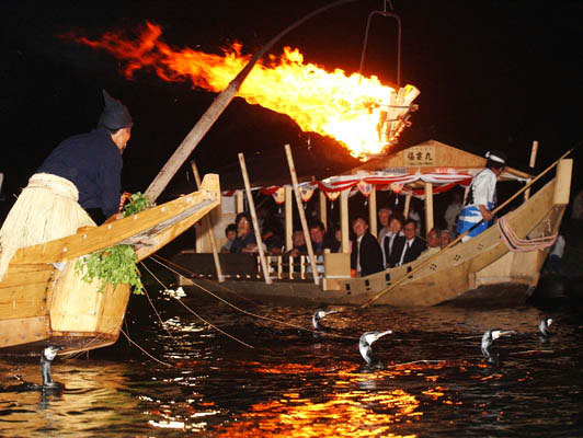 通過飼養鸕鶿來捕獲魚類,不僅在中國而且在日本也是傳統的捕魚作業之一。漁民們使用特殊的手法引導經過特殊訓練的鸕鶿捕獲魚類,鸕鶿在回到船上時會將捕獲而來的魚類從口中吐出。