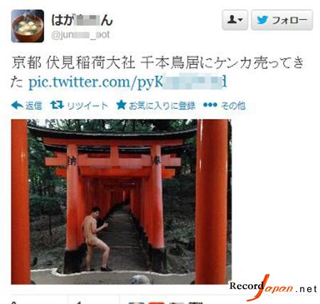 日媒11日報道,伏見稻荷大社是一座位于日本京都市伏見區內的神社,同時也是遍及日本全國各地約四萬多所的稻荷神社之總本社,以境內所擁有的“千本鳥居”聞名,然而近日,日本早稻田大學的一名大三學生卻在千本鳥居旁邊拍攝裸照,并將照片上傳至推特,其目的只為博得眾人一笑。