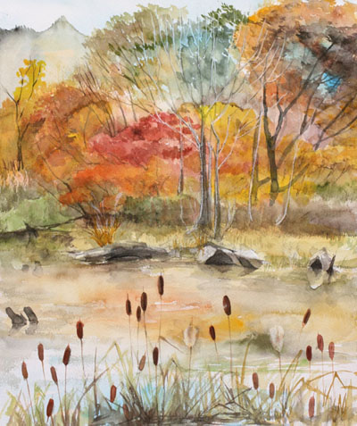 在柏市附近的一間畫室,一筆、一紙,愛花、愛貓的她書寫的風物畫卷……