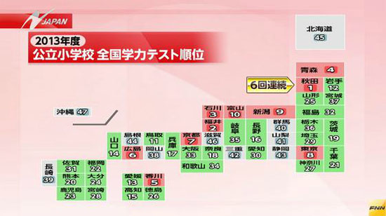 日本文部科學省公布了2013年度的全國學力測試的結果。在都道府縣的排名當中,秋田縣的小學連續6年,中學連續2年獲得日本全國第1。但是其中一道對中國孩子來說簡單到不行的題目,竟然只有三分之一的學生答對。