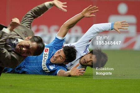 大和田常務在踢足球時遇到“追尾事故”時候的照片