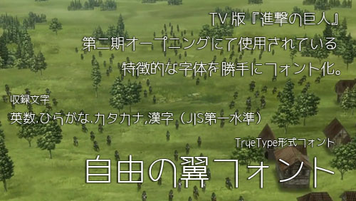 動畫《進擊的巨人》的第二首OP《自由之翼》中使用的字體想必大家應該有印象。這種字體在目前的word中是看不到的。而最近,日本居然有人制作出了這一款字體,并取名為自由之翼體。
