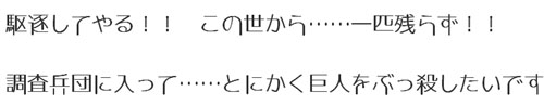 調査兵団に入って……とにかく巨人をぶっ殺したいです