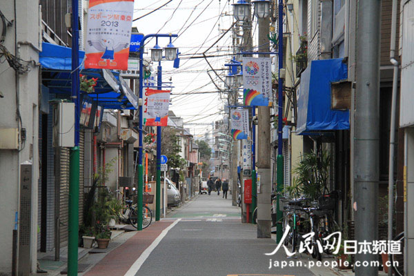 東京都內的一個住宅區的小巷,布滿電線桿和管線。