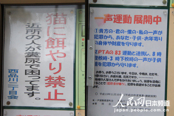 左圖:不要喂野貓,不然便便會讓大家覺得困擾。右圖:搞好鄰里關系,見面勤打招呼,共同防范犯罪行為。