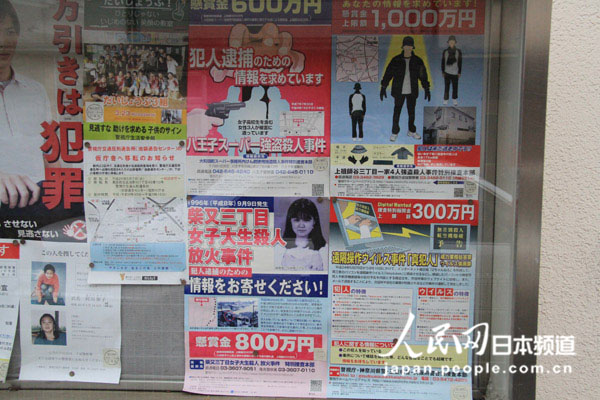 一個警亭外的廣告板上貼著通緝令、懸賞告示、尋人啟事等內容。