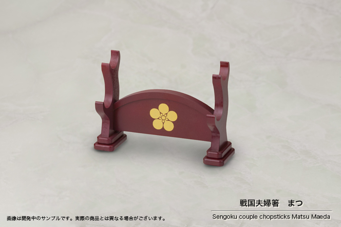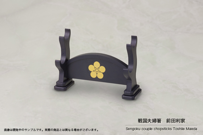 壽屋的“日本刀筷子”系列至今已經推出了以織田信長、武田信玄等戰國武將以及新選組等人的愛刀為主題的筷子。本次的利家夫婦筷子,因為利家有“槍之又左”的稱號,所以筷子的頂部做成了槍的形狀?曜拥谋倔w是黑色的,槍的部分涂上了朱紅色和金色,給人一種豪華的感覺。而妻子阿松的筷子則做成了薙刀的形狀。本體是小豆色,長刀部分涂成粉色,給人一種可愛的氛圍。本筷子附有黑色和小豆色兩種筷枕,,筷枕上印有前田家的家紋“梅缽”。利家和阿松是日本戰國歷史上的“模范夫妻”,所以將這套筷子拿來送給自己的妻子是最適合不過的禮物了。