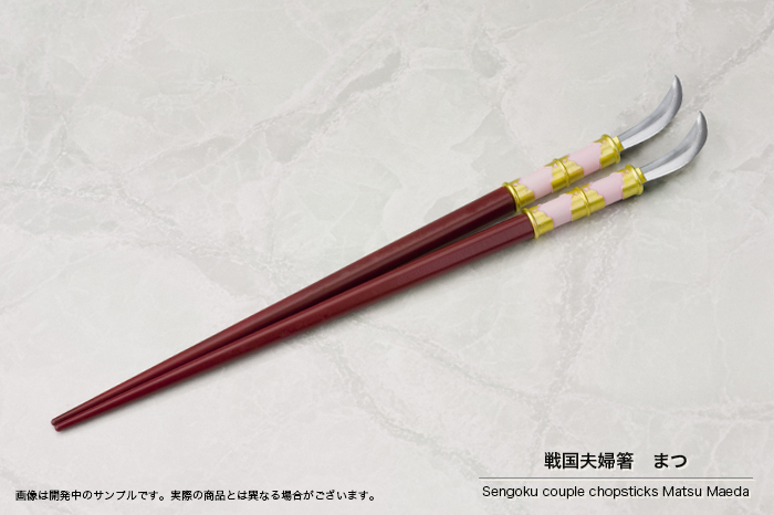 本的壽屋推出的以日本刀為模型的“日本刀筷子”系列的最新款,以戰國武將“前田利家”和其妻“阿松”為主題的“日本刀箸 戦國夫婦箸 前田利家とまつ(日本刀筷子 戰國夫婦筷子 前田利家和阿松)”將于11月發售,這兩副一套筷子售價3675日元。在尺寸方面,利家長約23cm,阿松長約21cm。