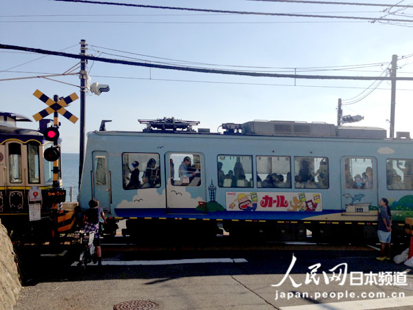 路口斷路閘及電車駛過的情景(圖片攝于神奈川縣鐮倉市)
