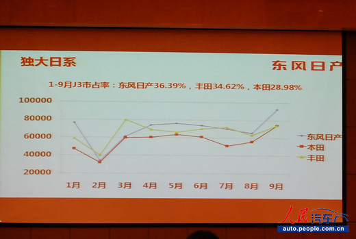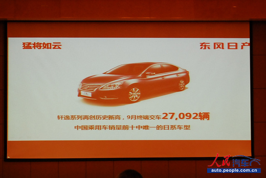 人民網北京10月21日電 (傅小康)記者近日從東風日產獲悉,今年9月,東風日產雙品牌銷量92,699輛(NISSAN品牌84,043輛,啟辰品牌8,656輛),同比激增107.89%,一舉沖破“9”字頭大關,達成該企業成立十年來最好的單月銷量業績。同時,2013年1-9月,東風日產不僅以一家企業36.39%的市占率力壓豐田、本田,繼續擴大日系第一的領先優勢,并且重新反超北京現代,強勢回歸行業四強。