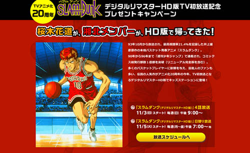 《灌籃高手》影響了無數的籃球運動員,在中國也有很多籃球愛好者是因為這部動漫而愛上籃球這項運動的,在藝人之中也有很多的粉絲。而這部留下無數傳奇的名作終于在動畫化20周年的今年再度復活,新動畫將以高清重制版的形式登場。于11月3日開始4集連播,11月5日開始每日1集放送。