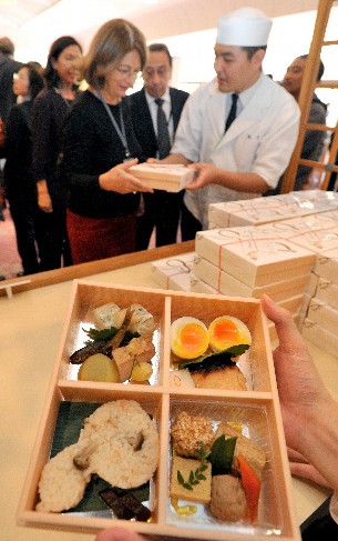 去年11月日本廚師向聯合國教科文組織展示日式便當(朝日新聞)