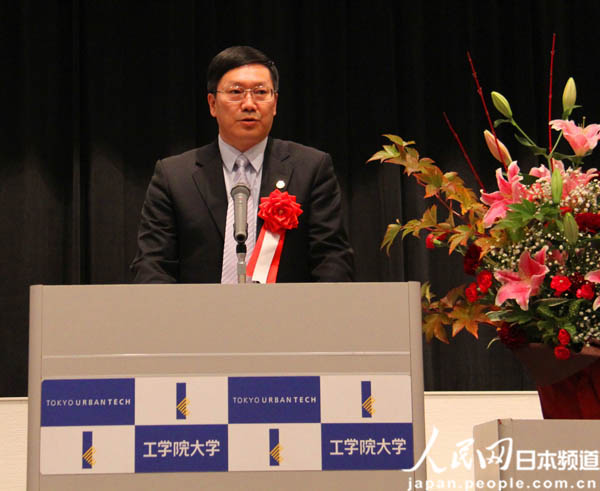 孔子學院總部副總干事胡志平在工學院大學孔子學院成立5周年典禮上致辭。攝影:人民網記者劉軍國