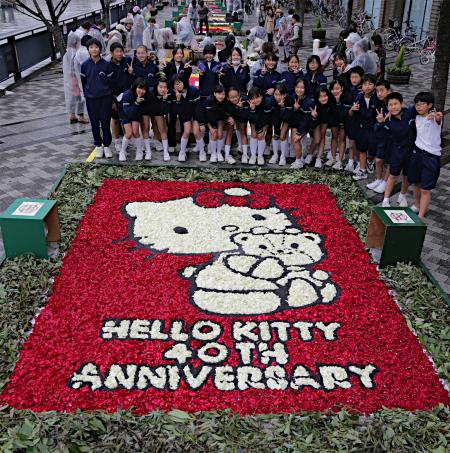 “Hello Kitty”花繪作品亮相東京晴海鮮花節