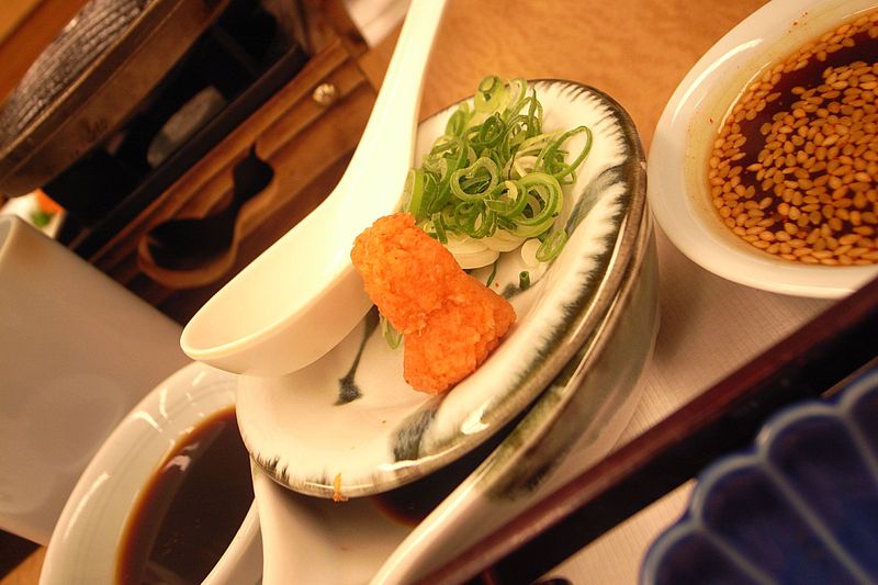 紅葉調味汁:是用白蘿卜和辣椒做成的調味汁,顏色亮紅如紅葉而得名?梢杂锰鞁D羅、炸雞塊、生魚片、納豆等蘸食。雖然只是一道普通的調料,但以紅葉“冠名”,吃起來似乎也更有韻味了。
