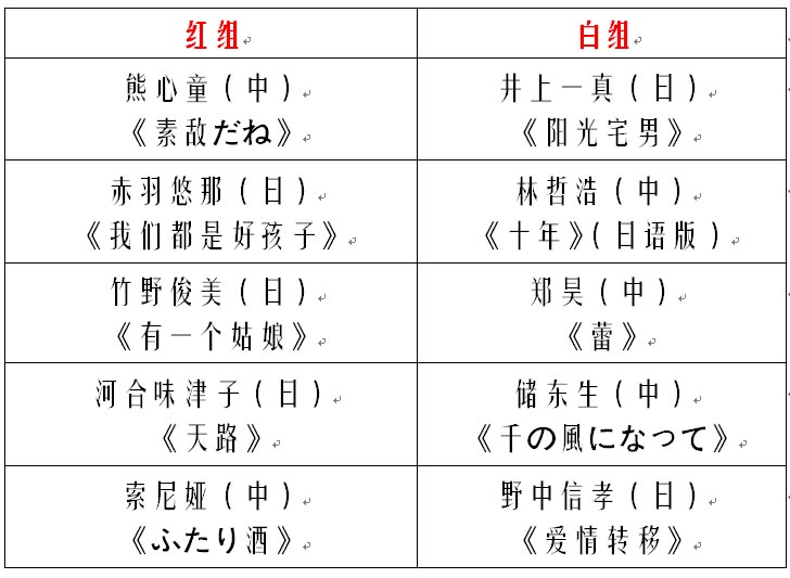 最終,評委在商議之后,從紅、白兩隊中選出了優勝隊,并評出中國參賽者最佳演唱獎、日本參賽者最佳演唱獎及最佳舞臺表現獎等。