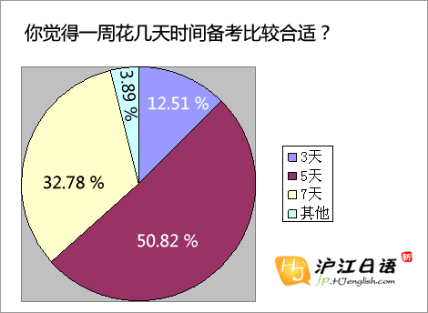每個禮拜愿意花5天的時間來備考的考生占到了一半。5天復習、2天休息,對于有一定日語功底的考生,或者是日語專業的學生來說,是一個勞逸結合的不錯選擇。