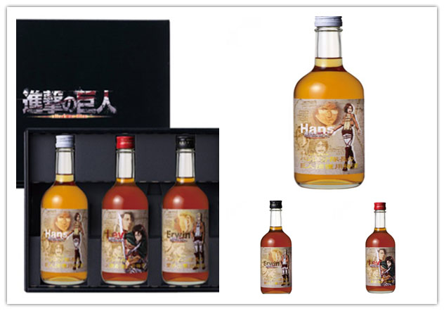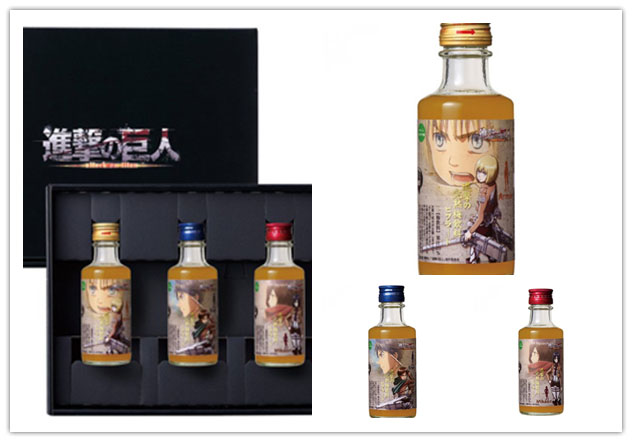 《進擊的巨人》將和作者諫山創故鄉大分縣日田市大山町的制酒商大山夢工房推出聯合商品——梅酒和梅果汁飲料,目前網購店正在接受預購。本次提供的商品有2種:梅酒3瓶套裝和無酒精梅果汁飲料3瓶套裝。梅酒套裝分別印著艾爾文、兵長、韓吉,梅果汁飲料套裝上分別印著艾倫、三爺、阿明的插畫標簽。大山夢工房還將在“豐后·大山響之鄉”店頭發售限定款兵長梅果汁飲料。