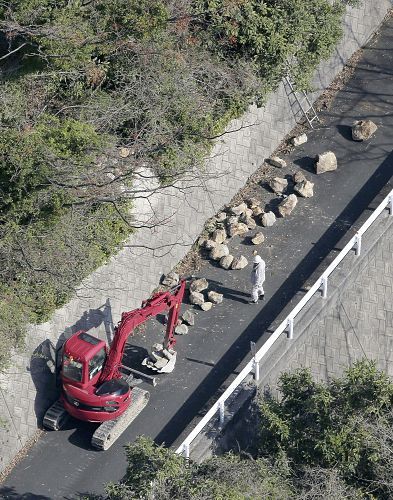 日本愛媛縣西予市因地震導致石頭滑落影響交通,相關人員正在處理。