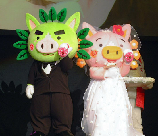 鹿兒島縣的吉祥物greboo與sakura舉行婚禮(朝日新聞)