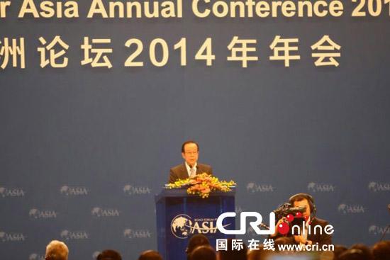 日本前首相福田康夫在海南博鰲論壇上發表演講 攝影:黎萌