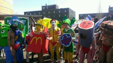 據日本媒體報道,4月8日,一位推特用戶在留言中寫道“我是被拒絕參加入學典禮的北海道大學一年級學生”并附上了照片。照片中,幾名新生站成一排,他們服裝奇特,分別打扮成了游戲《塞爾達傳說》中主人公林克、麥當勞的吉祥物麥當勞叔叔、麥當勞菜單上的薯條和游戲《太鼓達人》中的角色和田咚等角色。