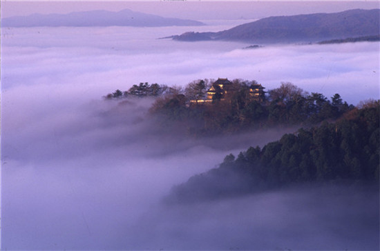 岡山縣高梁市的“備中松山城”也是一座云霧繚繞的“仙城”。備中松山城位于海拔430米的臥牛山山頂,在現存的擁有天守閣的山城中屬于海拔最高的一座。該天守閣被國家認定為重要文化財產,有著很高的歷史價值。和竹田城一樣,每年9月下旬到次年4月上旬的清晨是觀賞云海美景的好時機。