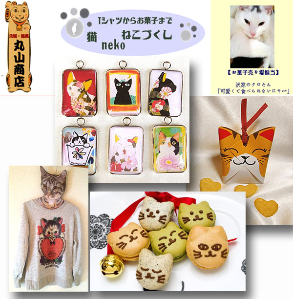 貓咪雜貨店。貓咪形狀的小點心、各種小飾品以及貓咪的日常用品等,與貓有關的商品應有盡有。賣場擔當也是貓咪哦~