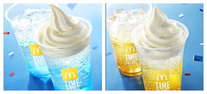 日本低調藍檸檬汽水(分有無雪頂兩款)、荷蘭熱情橙檸檬汽水(分有無雪頂兩款)、比利時風巧克力麥旋風(加入華夫餅干屑)、法式焦糖布蕾麥旋風