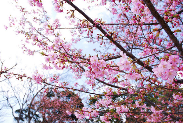 神奈川縣藤澤市江之島 一年一度早櫻開花季,櫻花朵朵盛開。