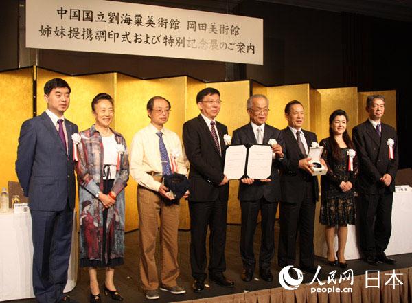 中國首家以個人姓名命名的國家美術館劉海粟美術館與日本岡田美術館16日在東京召開聯合記者會,宣布兩館正式結成姐妹美術館,今后將開展一系列合作。當天,劉海粟美術館館長張堅與岡田美術館館長小林忠在發布會現場共同簽署了合作協議。