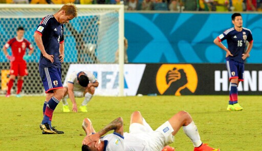 日本隊在多1人的情況下,最終僅以0-0與希臘戰平。賽后,日本主力球員本田圭佑難掩悔意:“當然,我們是抱著只有取得兩勝(才能小組出現)的心情去進行比賽的。但是沒有進球我感到非常遺憾,非常非常不甘心!
