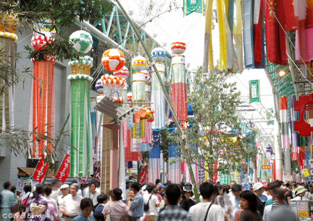 仙臺七夕節不愧是日本第一規模的七夕節,每年會吸引大約200萬人以上的游客,那些懸吊在青竹桿上的絢爛七夕裝飾,將整個街市渲染成五彩的海洋,容不得游人錯過。