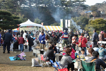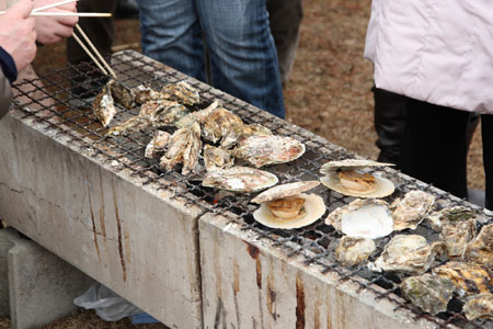 節日里,游客可以品嘗到免費的牡蠣火鍋和烤牡蠣之外,還可以嘗試用炭火燒烤牡蠣的體驗活動。