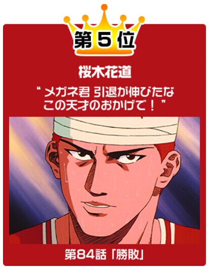 第五名:櫻木花道 “眼鏡仔,托我這個天才的福,你不用提前退休了!“