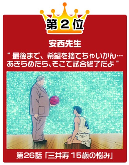 第二名:安西教練 “不要輕言放棄……一旦放棄,比賽就到此結束!