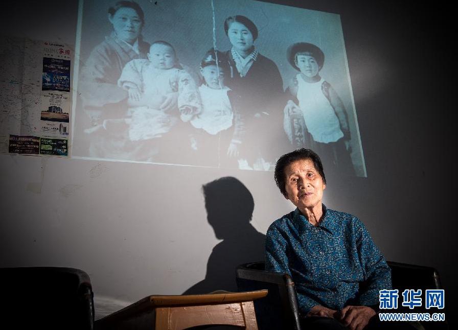 投影照片為1943年,呂淑君(右二)在來中國前與姐姐和外甥們的合影(呂淑君供圖)。(新華社記者 郭晨 攝)