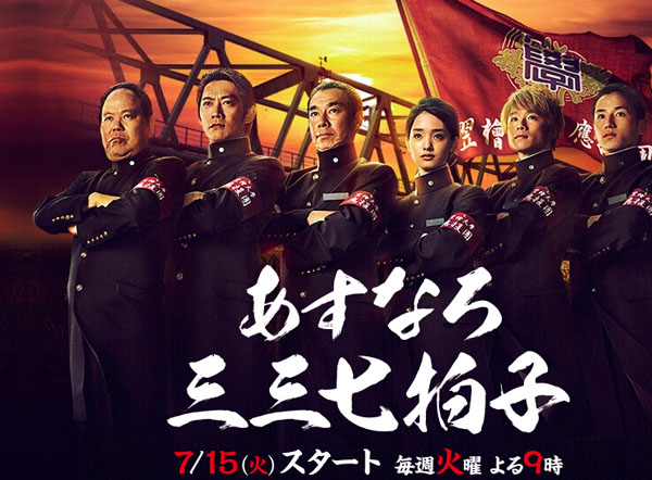 以描繪家庭和友情見長的人氣作家重松清出品的小說《三三七拍子》,講述了一個在貿易公司就職的普通50歲中年上班族藤卷大介(柳葉敏郎飾)原本將遭受裁員命運,但由于社長希望他保住母校拉拉隊,于是借調到了即將廢部的大學拉拉隊的故事。劇中大介穿著傳統學生服和剛力彩芽、風間俊介等年輕人一起進入拉拉隊。>>詳細