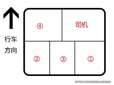 當幾個人一同乘坐出租車時,落座方式一般也有講究。日本因為靠左行駛的緣故,司機坐在前排右側。而前排左側的副駕駛位則為全車地位相對最低的座位,一方面可能是由于一旦出事危險系數高,另一方面,副駕駛位通常為下車時結賬的座位。而后座中,最靠里的座位地位最高,但是中間的座位卻比最靠外的相對地位低,這是由于③的位置較窄,坐起來沒有兩側舒服的緣故。因此,如果請別人先上車以示謙虛,要注意不能因為一味讓別人先進而最后自己坐了②號位,否則反而失了禮。