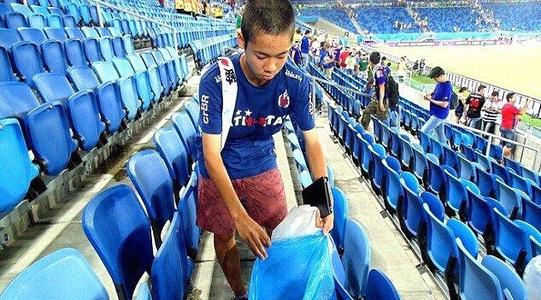 然而,日本球迷們并沒有“發泄”。賽后,在下著淅淅瀝瀝的小雨,在無人組織的情況下,這些身穿藍色應援服的“藍武士”日本球迷們,雖然臉上難掩悲傷懊惱之色,但卻無一失態,只是彎下腰,默默地開始撿拾賽場上留下的垃圾。