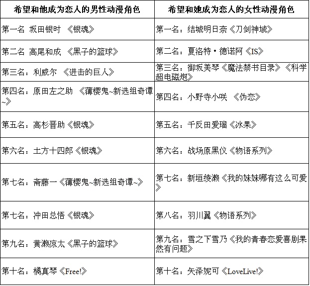你心目中的動漫“男神”和“女神”上榜了么?(編譯:馬瀟漪 審稿:陳建軍)