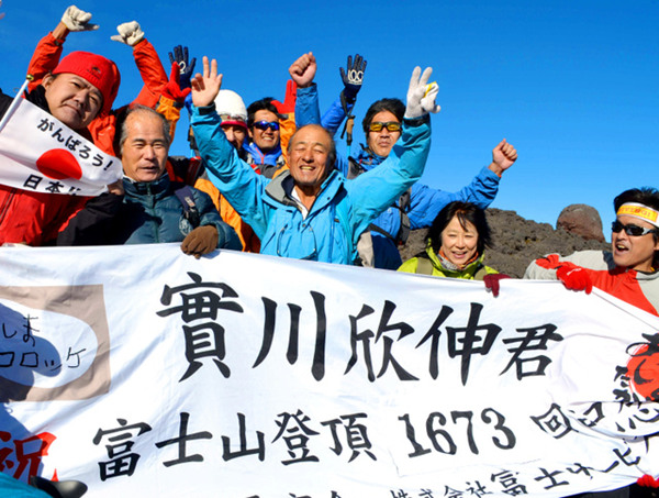 出身日本靜岡縣的登山家實川欣伸16日第1673次登上了富士山頂,成功刷新了由梶房吉保持的1672次登頂的記錄,成為問頂富士山次數最多的人。